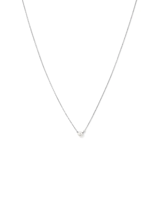 5mm Cultured Freshwater Pearl and Diamond Necklace in Sterling Silver