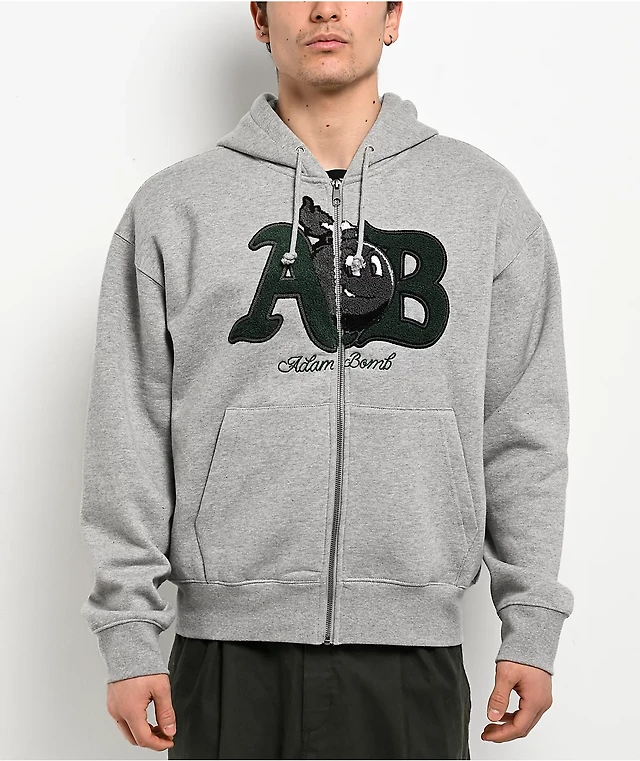 Adam Bomb Mascot Chenille Grey Zip Hoodie
