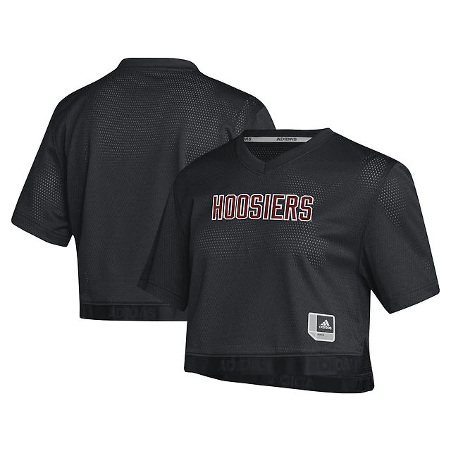 Women's adidas Black Indiana Hoosiers Primegreen V-Neck Cropped Jersey