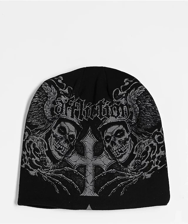 Affliction x Haunted Mound Massacre Black Reversible Skully Beanie