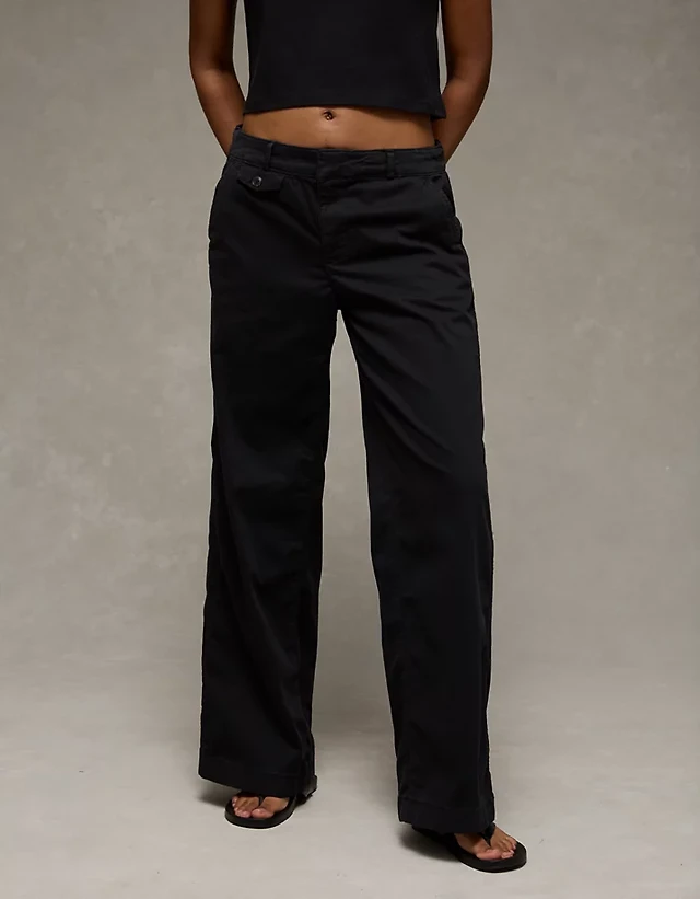 AE Stretch Low-Rise Wide-Leg Khaki Pant
