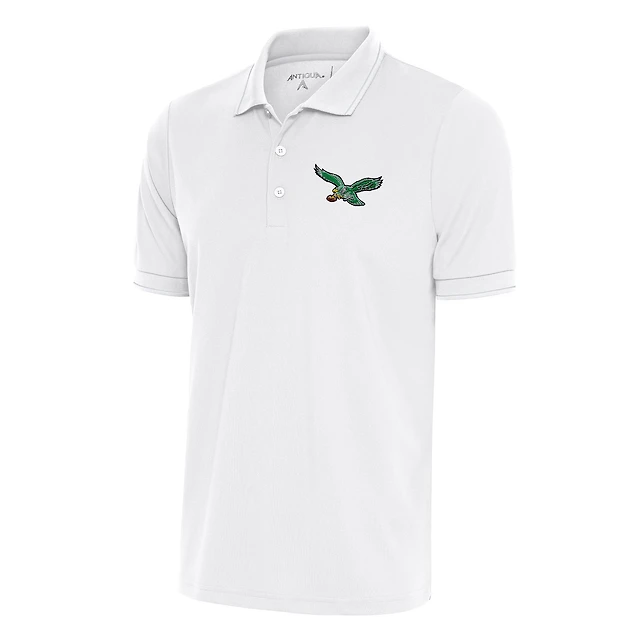 Men's Antigua White Philadelphia Eagles Team Logo Throwback Affluent Polo