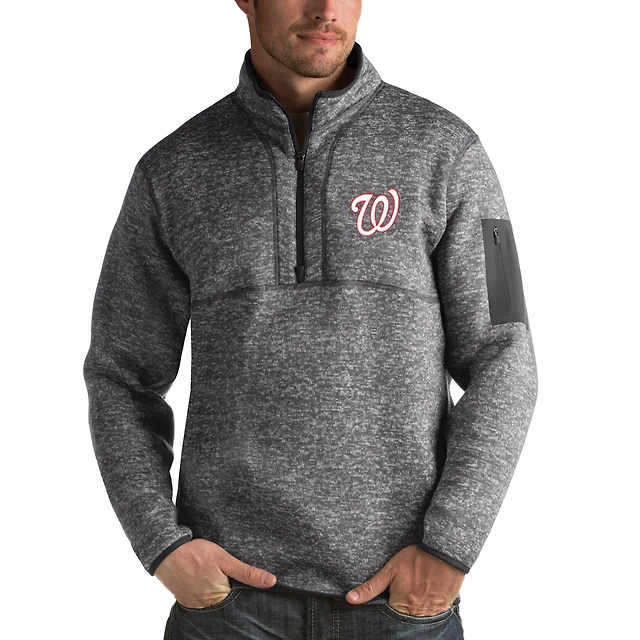 Men's Antigua Heathered Charcoal Washington Nationals Fortune Half-Zip Sweater