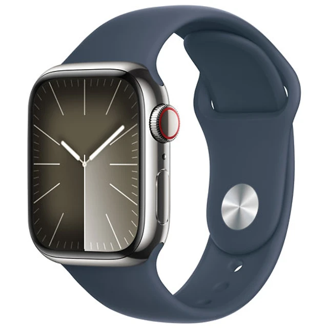 TELUS Apple Watch Series 9 (GPS + Cellular) 41mm Silver Stainless Steel Case w/Storm Blue Sport Band - / M