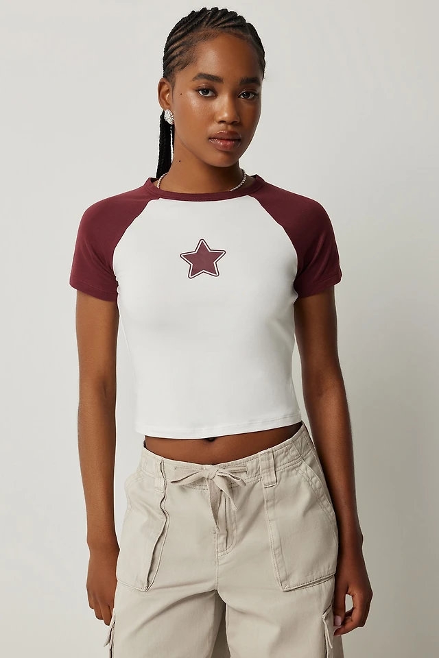 Ardene Short Sleeve Crop Raglan T-Shirt in Dark Blue | Size | Polyester/Spandex