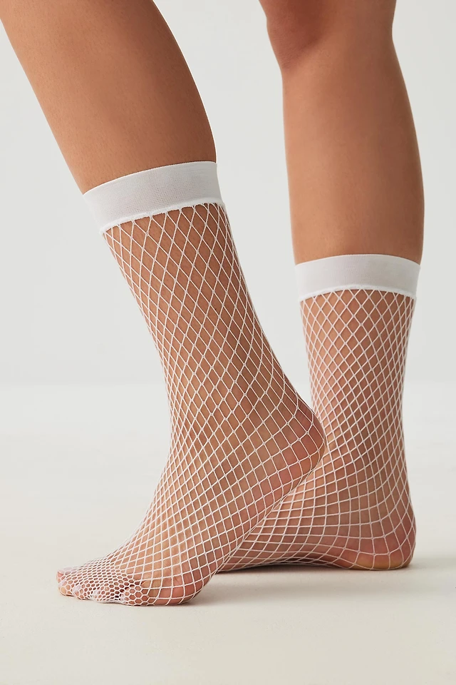 Ardene Fishnet Demi Crew Socks in White | Nylon/Spandex