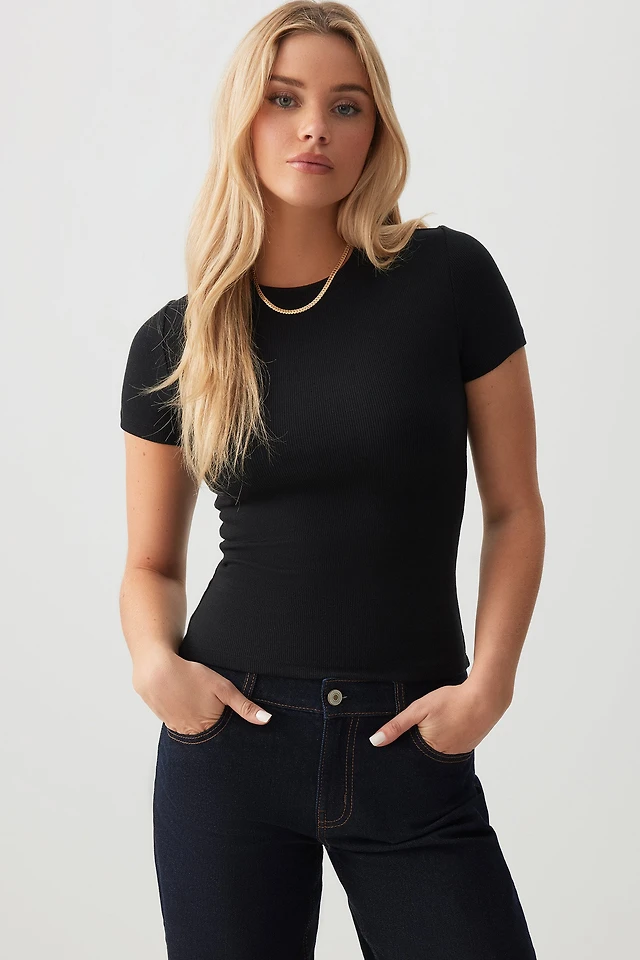 Ardene Short Fitted Crew Neck T-Shirt in | Size | Cotton/Elastane