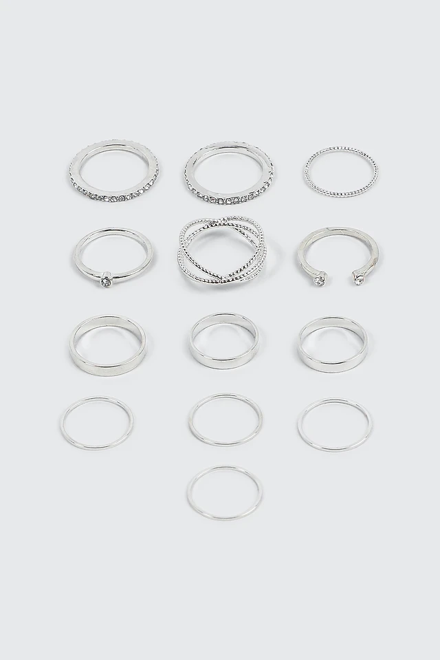 Ardene 12-Pack Assorted Rings in Silver | Size