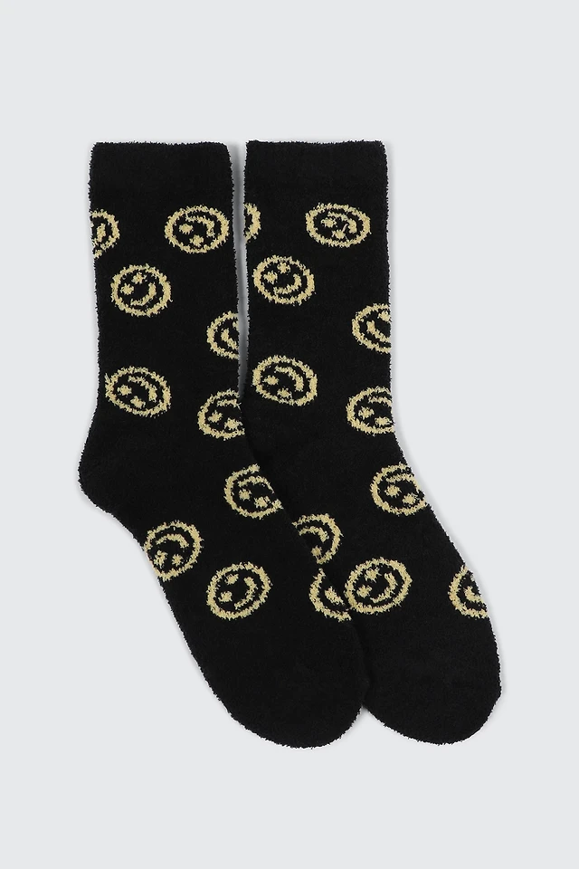 Ardene Checkerboard Cozy Socks in Black | Polyester/Spandex