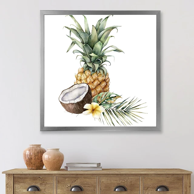 Pineapple with Coconut Plumeria and Palm Leaves Canvas Wall Art Print