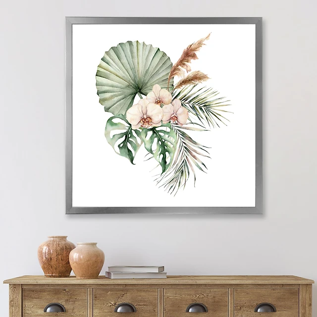 Tropical Bouquet with Orchids Palm Leaves Canvas Wall Art Print