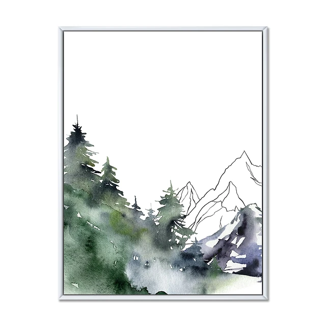 Winter Dark Blue Mountain Landscape with Trees III Canvas Wall Art Print