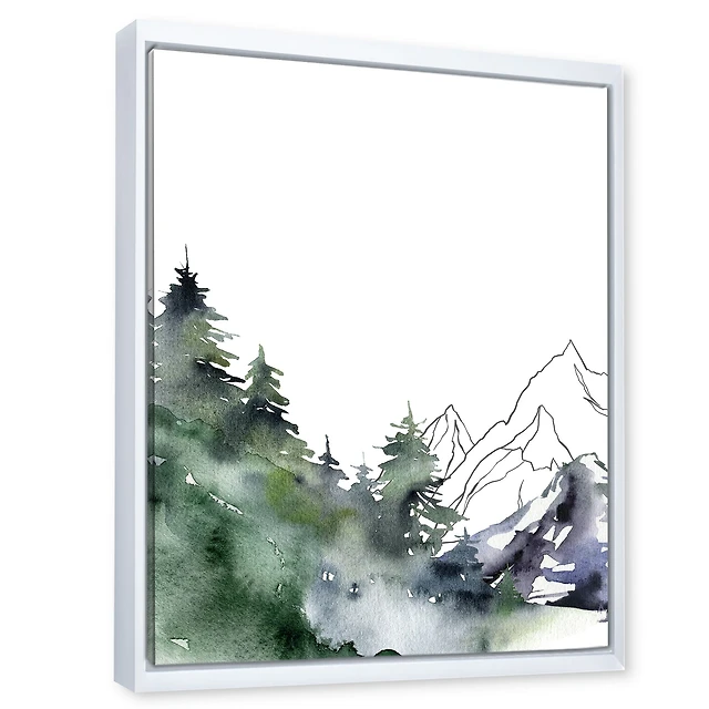 Winter Dark Blue Mountain Landscape with Trees III Canvas Wall Art Print