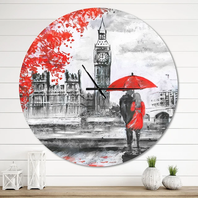 Couples Walking Paris Metal Wall Clock