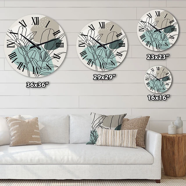 Green Botanical Branch With Leaves Oversized Wall Clock