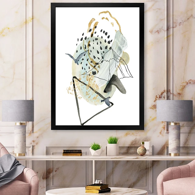 Gouache of Abstract Landscape with Mountain Bird Canvas Wall Art Print