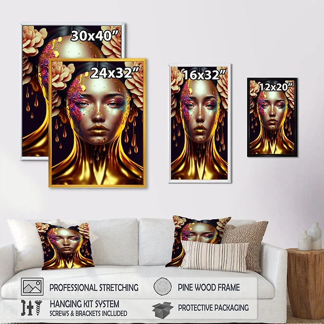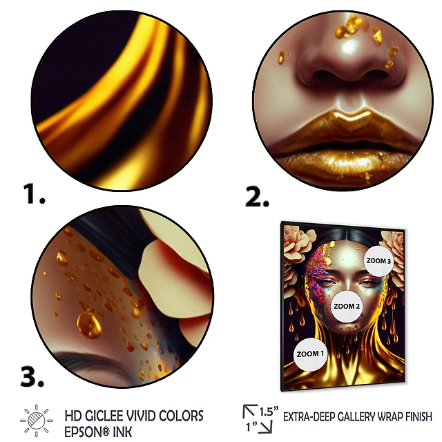 Gold Paint Drips From Sexy Woman Lips Canvas Wall Art