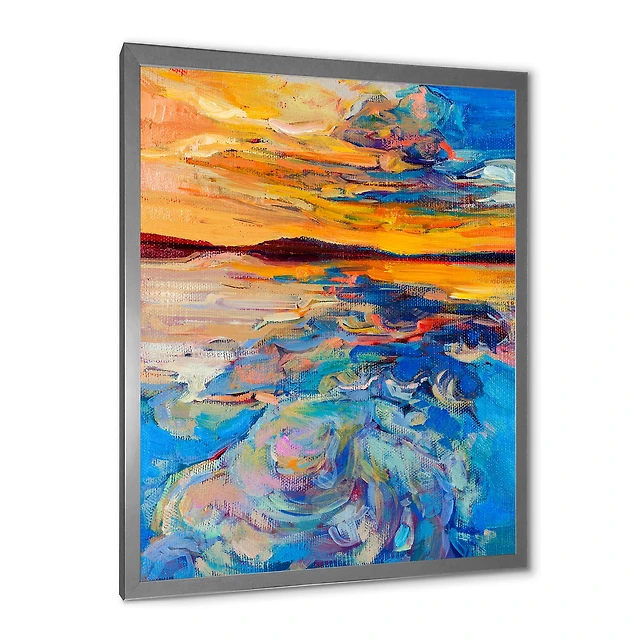 Orange Sunset Over Whirly Blue Waves Canvas Wall Art Print