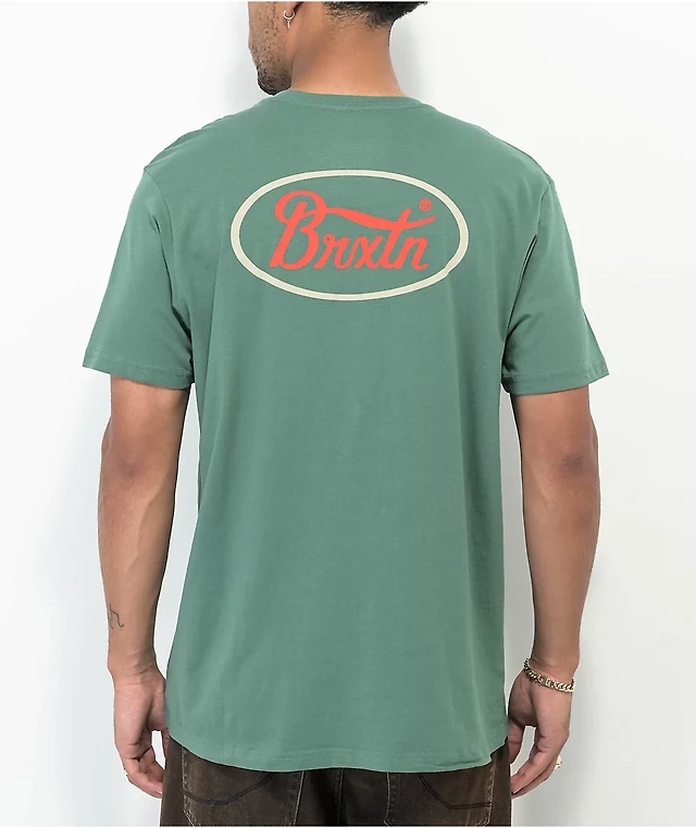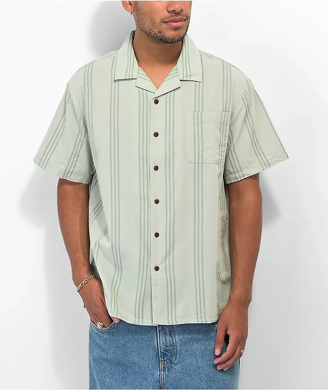 Brixton Charter Herringbone Green Stripe Short Sleeve Button Up Shirt