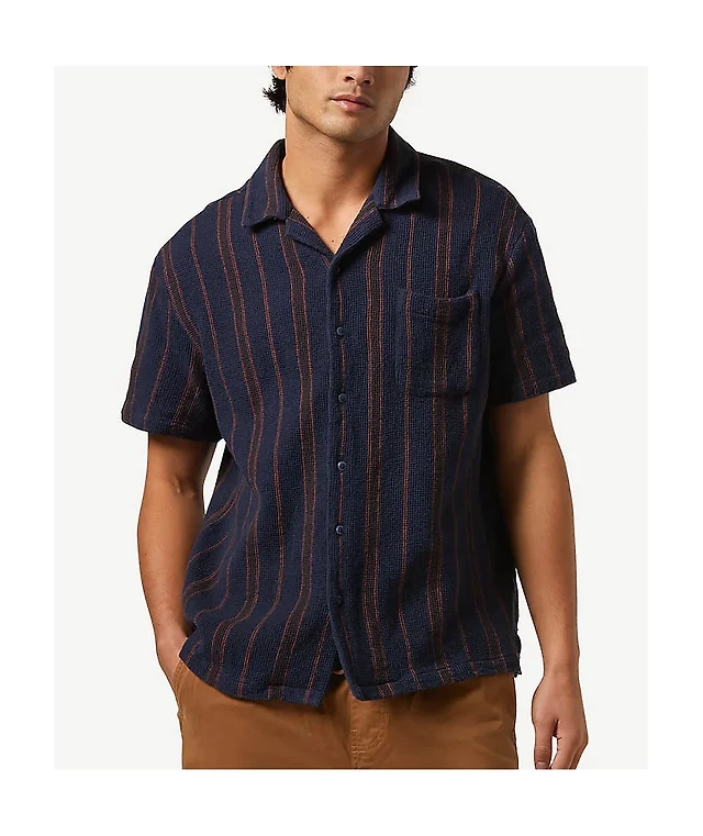 Brixton Bunker Waffle Woven Navy Wash Short Sleeve Button Up Shirt