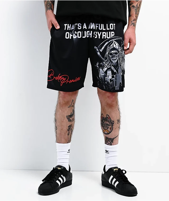 Broken Promises x That's A Awful Lot Of Cough Syrup Getto Bird Black Mesh Shorts
