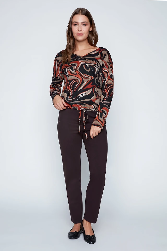 Abstract print drawstring hem top