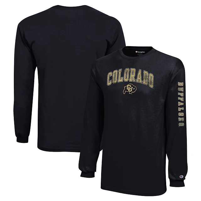 Youth Champion Black Colorado Buffaloes Distressed Arch Over Logo Long Sleeve T-Shirt