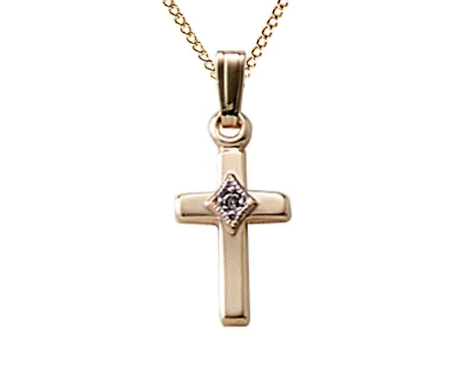 Children's 10K Yellow Gold 13" Diamond Set Cross