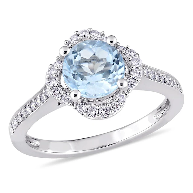 Julianna B 10K White Gold Aquamarine & 0.144CTW Black Diamond Ring