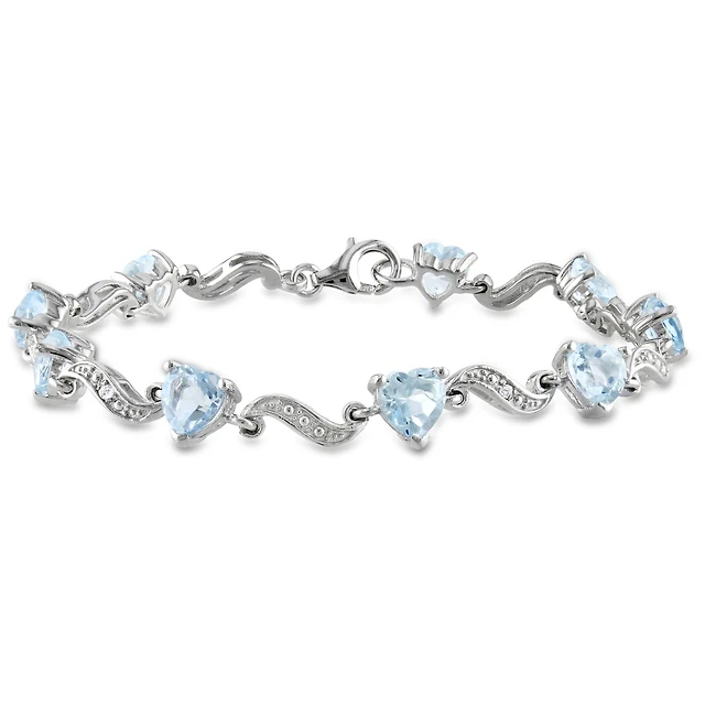 Julianna B Sterling Silver Blue Topaz and Diamond Heart S-Link Bracelet