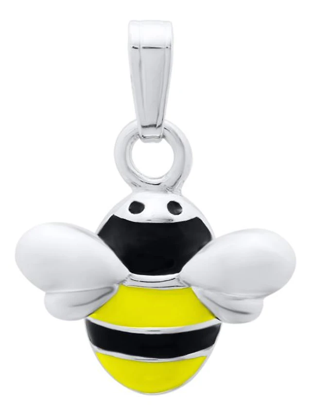 Sterling Silver Children's Yellow & Black Enamel Bumblebee 15" Pendant