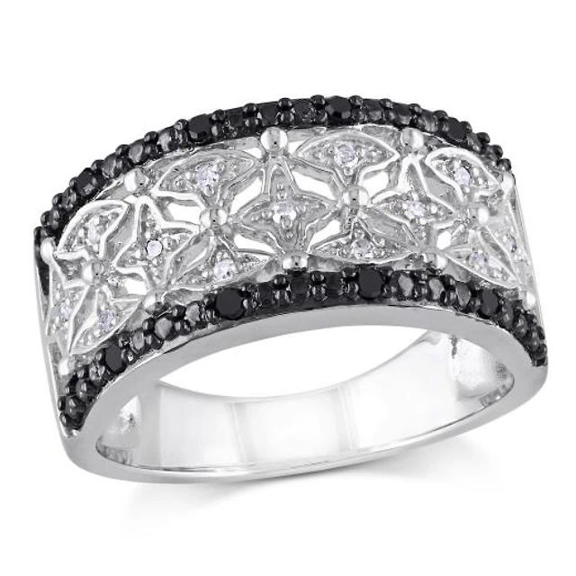 0.11CTW Black & White Diamond Open Snake Ring in Sterling Silver