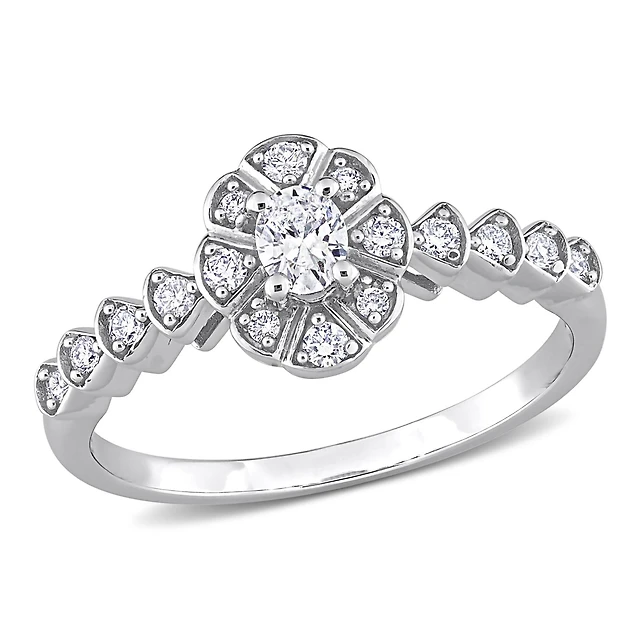 Julianna B 14K White Gold 0.98CTW Diamond Oval Shaped Bridal Ring