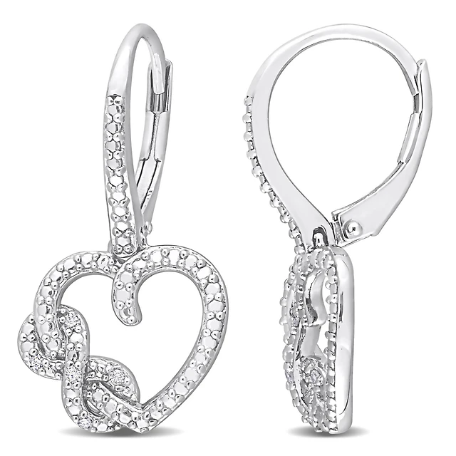 Julianna B Sterling Silver Diamond Heart Dangle Earrings