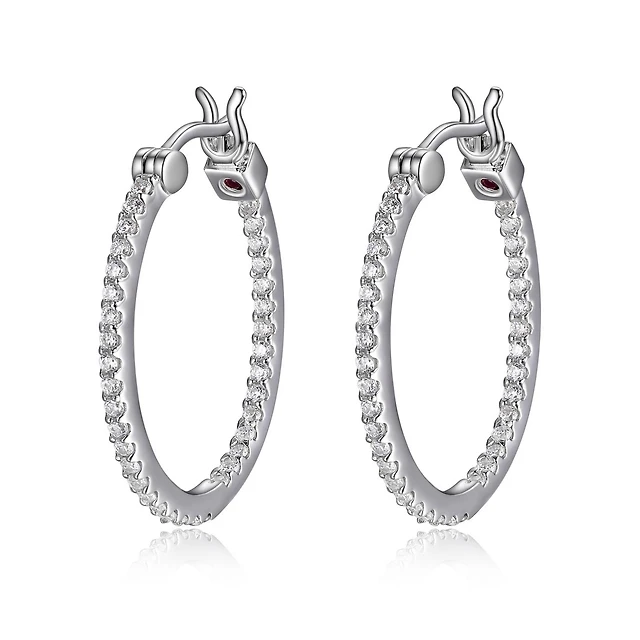 Julianna B Sterling Silver 0.52CTW Black & White Diamond Hoop Earrings