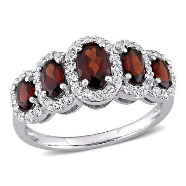 Sterling Silver Garnet & White Topaz Ring