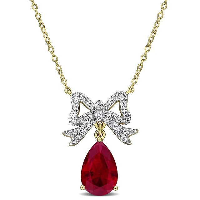 Sterling Silver Created Ruby & Created White Sapphire 18" Pendant