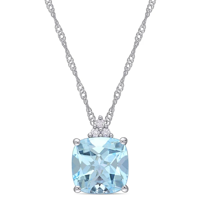 Julianna B 10K White Gold Aquamarine & 0.10CTW Diamond Pendant