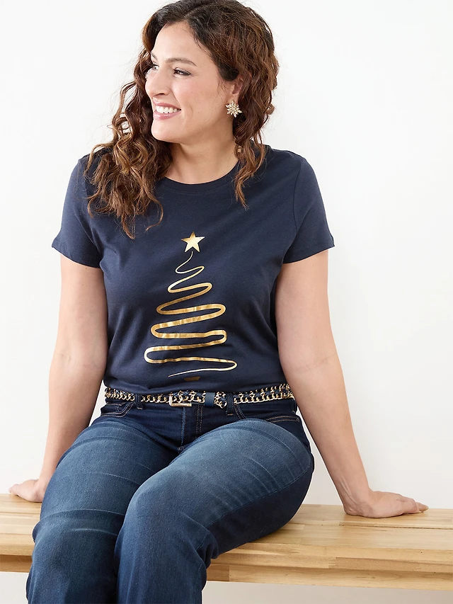 Petite Three-Quarter Sleeve Top with Metal Hardware
