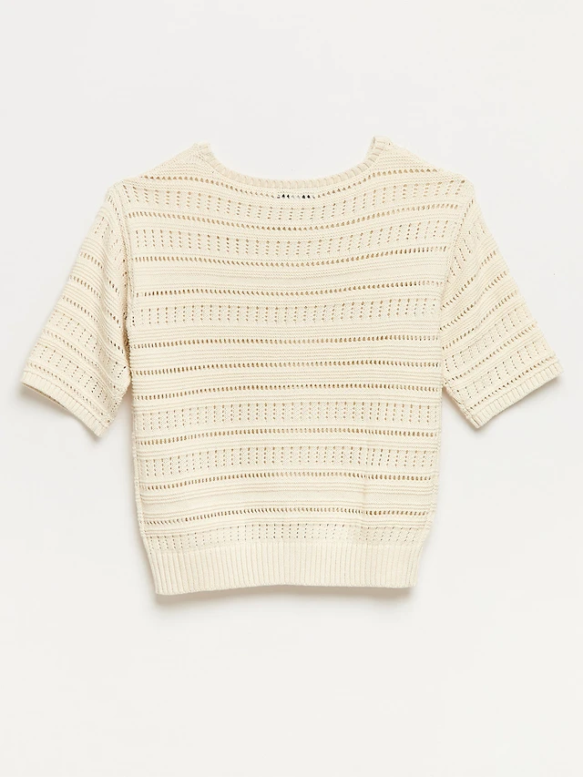 Short Sleeve Navy Crochet V-Neck T-Shirt