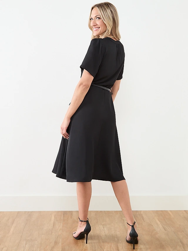 Sleeveless Fit & Flare Dress in Black/White Dot