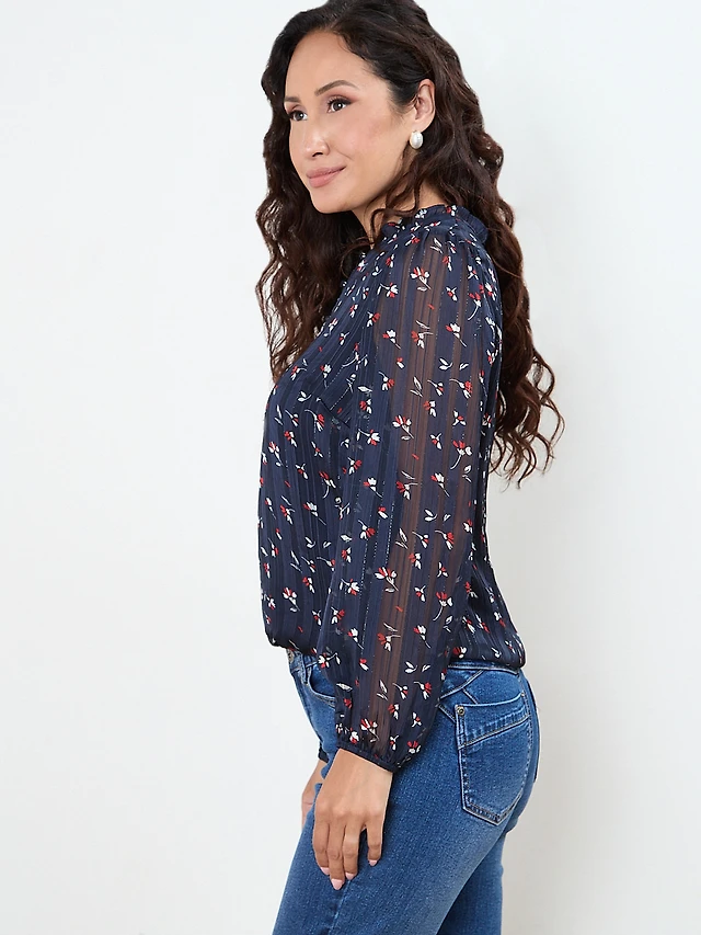 Petite Long Sleeve Chiffon Blouse