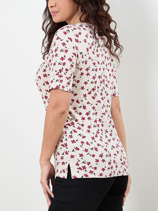 Petite Short Sleeve Boatneck T-Shirt in Crimson Floral