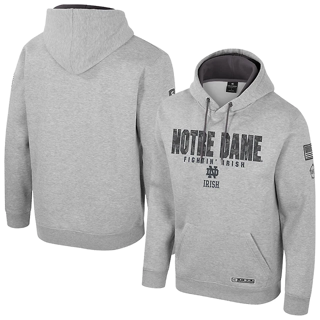 Men's Colosseum Heather Gray Notre Dame Fighting Irish Oorah OHT Military Appreciation Pullover Hoodie