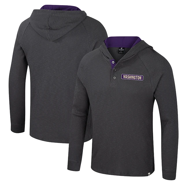 Men's Colosseum Charcoal Washington Huskies Dujour Ralgan Long Sleeve Henley Hoodie T-Shirt