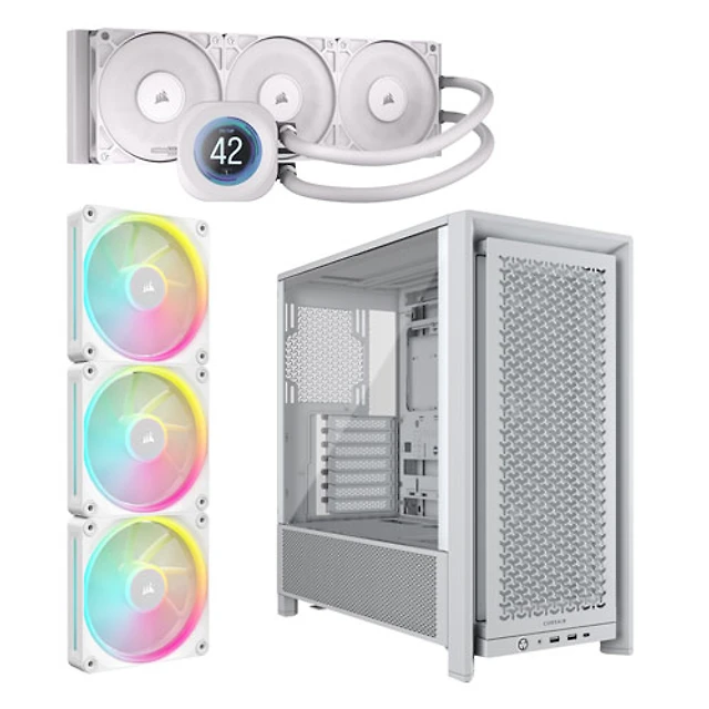 Corsair 5000D ARGB Mid-Tower ATX Computer Case w/ 360mm Liquid CPU Cooling System & 3-Pack 120mm PWM Case Fans -White