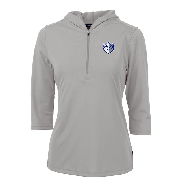 Women's Cutter & Buck Silver UConn Huskies Logo Virtue Eco Pique Half-Zip 3/4 Sleeve Pullover Hoodie