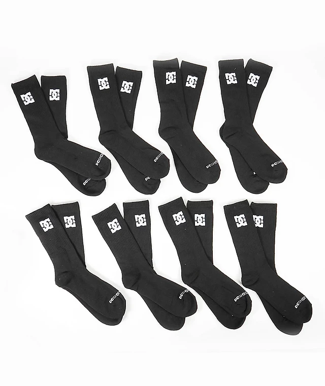 DC 8 Pack Black Crew Socks