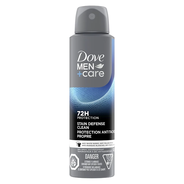 Dove Men+Care Dry Spray Antiperspirant Stain Defense Clean antibacterial odour protection 107g