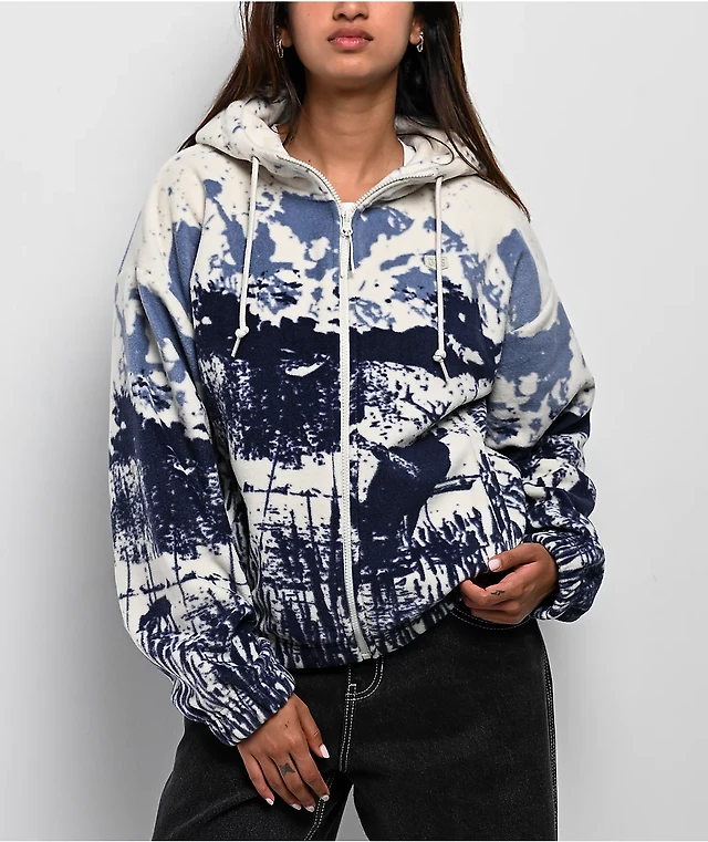 Dravus Helia Landscape White & Blue Fleece Zip Hoodie